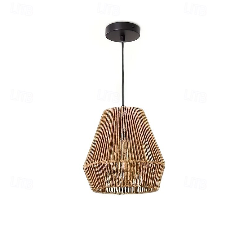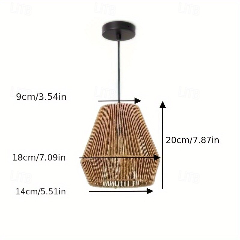 Country Vintage Braided Rope Pendant Light, Artistic Hollow Design, 20cm Height, Warm White/White Light, E26/E27, Adjustable Chain 1