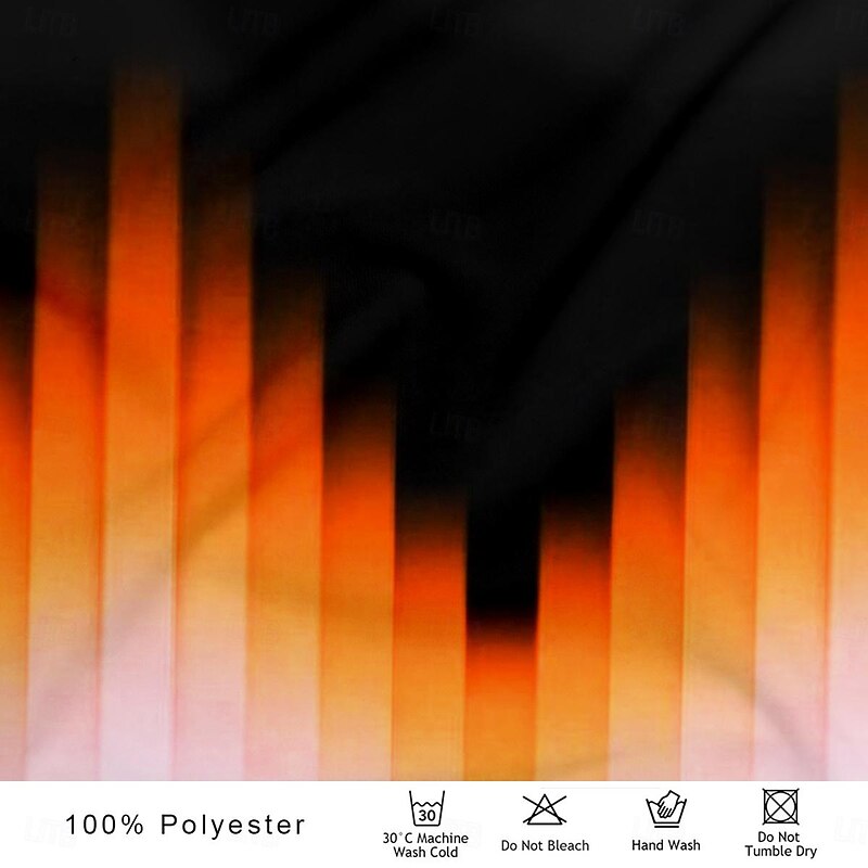 : This polo shirt stands out with its bold gradient design, transitioning from a striking black at the shoulders to a vibrant orange, and finishing in white towards the hem. The collar and placket are accentuated in a bold orange, contributing to the shirt's dynamic and contemporary style. The 3D print and button detailing give it a trendy edge.