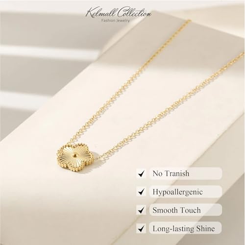 KELMALL Dainty Four Leaf Clover Necklace for Women – 18K Gold Plated Stainless Steel Lucky Charm Pendant – Elegant Minimalist Jewelry Gift, Box Packed 3