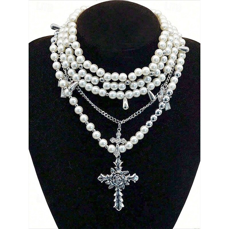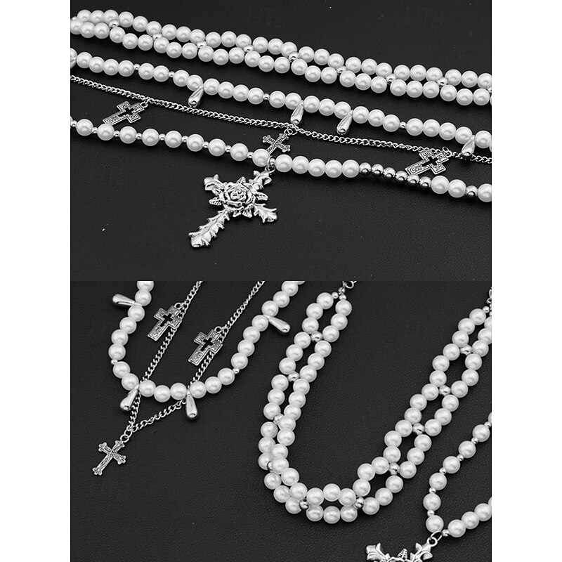 $11.99 - Women's Gothic Pearl Rose Thorn Cross Multi-layer Necklace - Vintage Multi-strand Necklace Jewelry for Halloween Parties and Vintage Occasions 2025. Shop for cheap Halloween Accessories online? Buy at lightinthebox.com on sale today!
