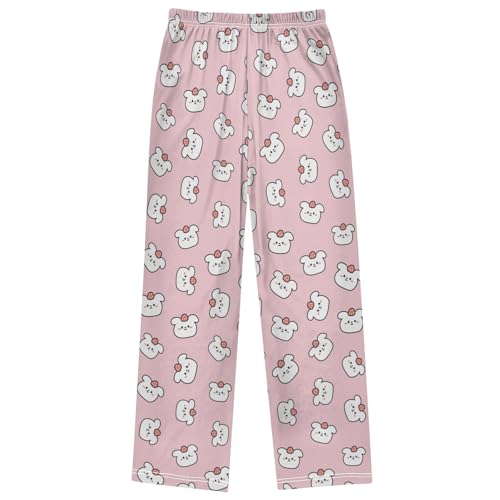 HOT ! Boy's Lounge Pants White Dog Strawberry Head Kids Jogger Pants Elastic Waist Long Bottoms with Pockets 6-14 Years