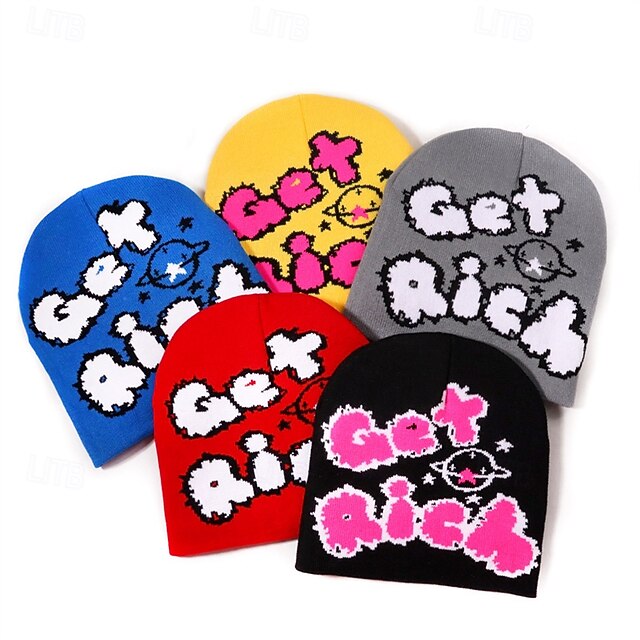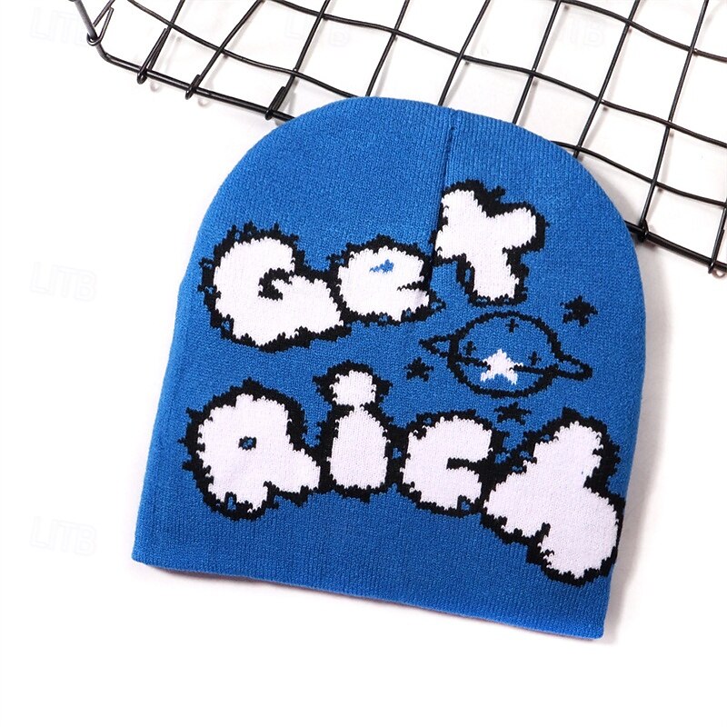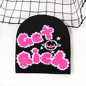 More information about Men's Unisex Beanie Hat Winter Hats Beanies Knit Hat Winter Beanie Black Yellow Acrylic Fibers Knitted Cozy Daily Wear Going out Letter Soft Warm
