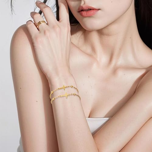 • Adjustable Gold Cross Bracelet:The length of this dainty cross bracelets is 6.5"+2" inch with extension, which suitable for most women. They fit comfortably on any women wrist, offering both elegance and practicality
