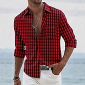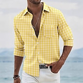 More information about Men's Summer Shirt Casual Shirt Beach Shirt Button Up Shirt Black Yellow Pink Red Sky Blue Long Sleeve Plaid / Check Lapel Vacation Hawaiian Button-Down Clothing Apparel Polyester Fashion Casual