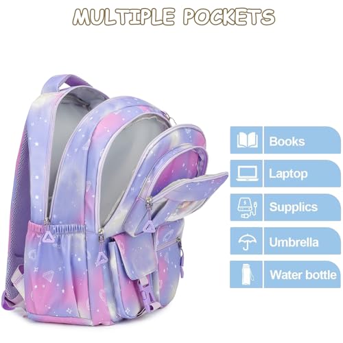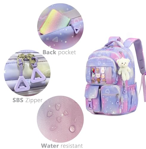 Kids Backpack for Girls Cute School backpack with Lunch Box Kawaii Book Bag Set for Primary Elementary School,Purple 5