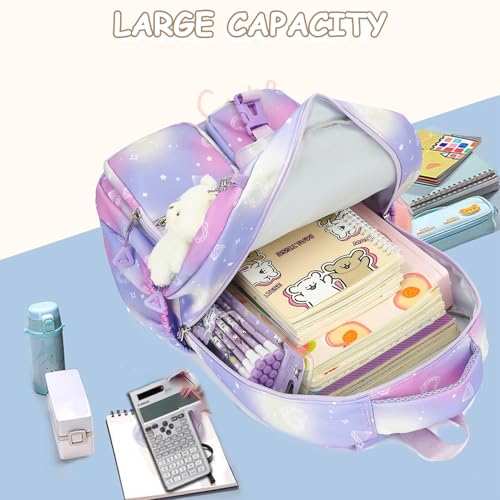 HOT ! Kids Backpack for Girls Cute School backpack with Lunch Box Kawaii Book Bag Set for Primary Elementary School,Purple