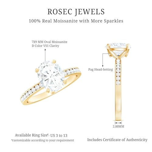Certified Moissanite 7X9 mm Oval Engagement Ring, D-Vs1 Quality, Moissanite Ring with Side Stones - Ready To Gift 5