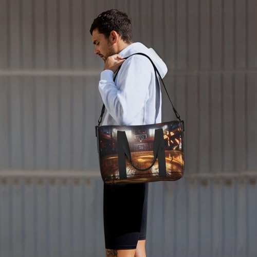 Style Meets Functionality: Style and practicality harmonize in our Basketball court duffel bag. Express your one-of-a-kind fashion sense with confidence while effortlessly carrying all your essentials. No longer do you need to make compromises between fashion and functionalityDurable And Waterproof And Easy To Carry: The Basketball court travel bag is made of high-quality polyester fabric which is durable, waterproof and tear resistant. With an adjustable, detachable shoulder strap, you can carry it as a handbag, tote bag, carry-on bag or crossbody bagLarge Capacity: Dimensions of the large handbag Waterproof Weekender Bag are 41 x 29 x 15 cm / 16.1 x 11.4 x 5.9 inches. The big compartment inside is spacious enough for carrying all your travel essentials on short trips or weekend trips: clothes, pants, footwear, cosmetics, toiletries, etcPortable Personal-Item: TSA-Free Duffle shoulder bag, fits perfectly under an airplane seat, The exterior zip pocket allows quick access to essential items during the flight. Additionally, it easily slides onto the handle of your suitcase easily and stays in place. Make airport travel hassle-freeWide Application Duffel Bag: Foldable and portable, your travel essentials. A perfect choice for you to carry all your sports, gym, weekend trips, daily use and travel essentials. Use as business travel bag, Hospital Bag for Labor and Delivery, travel carry on bag for airplane, personal item bag, travel holdall bag, gym tote bag Perfect for everyday use. superior materials and excellent craftsmanship ensure long-lasting durability.