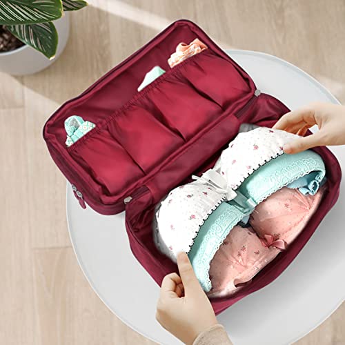 Unaone Travel Underwear Organizer - Portable Bra Travel Packing Storage Bag Large Compartment Underwear and Sock Organizer Bag, Burgundy 5