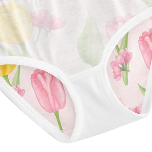 Pink Yellow Tulips Floral Green Leaves Little Girl Panties Toddler Girls Underwear Cotton Fancy Briefs Kids Undies 2t 5