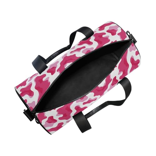 HOT ! Pink Cow Print Sports Duffel Bag Full Print Polyester Barrel Gym Bag with Side Zipper Pocket Detachable Shoulder Strap, Perfect for Sports Gym Weekend Travel and Outdoor Use