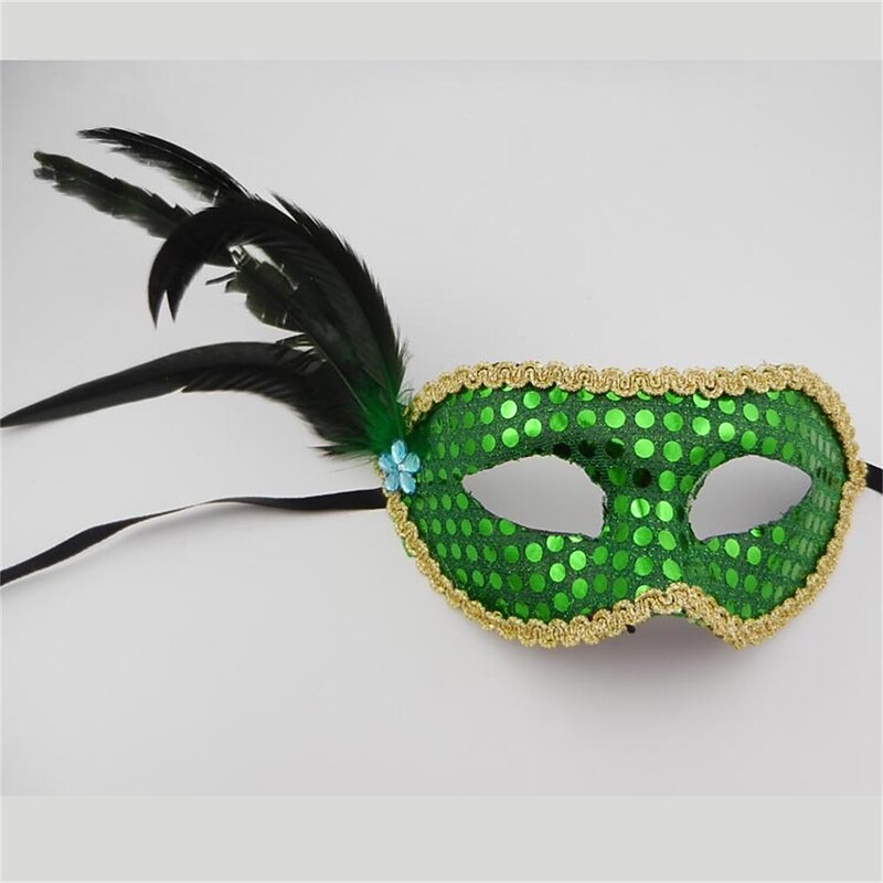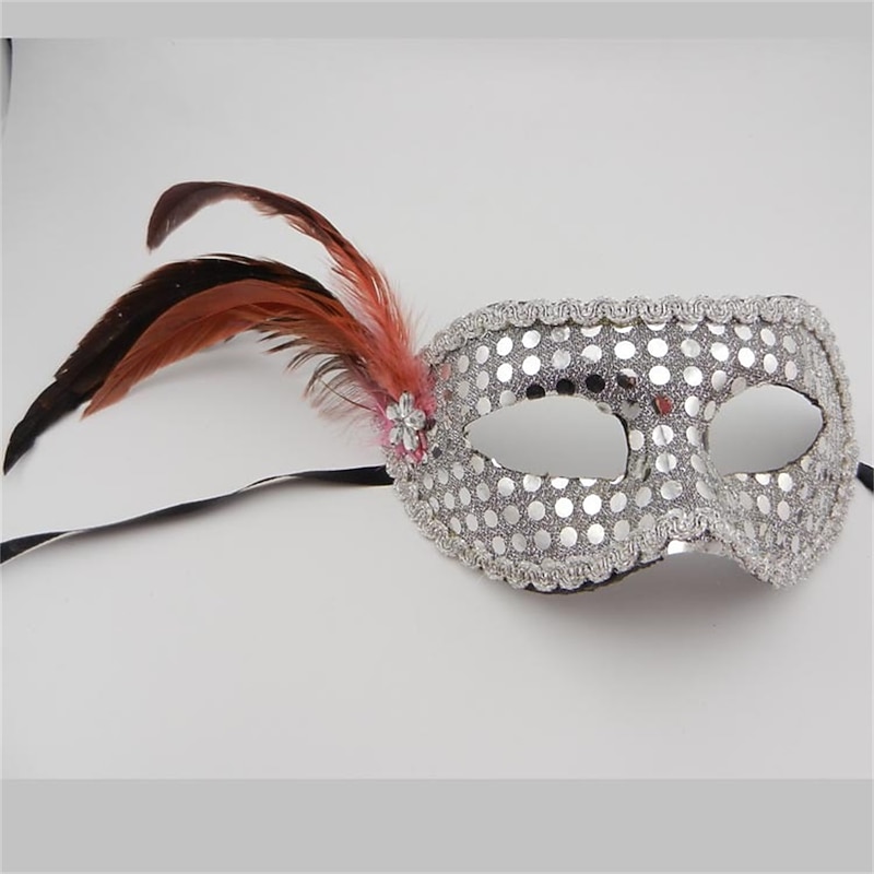 Highlights [Fabric] Crafted from high-quality, lightweight plastic, this masquerade mask offers comfort for prolonged wear. The vibrant surface is adorned with shimmering sequins, ensuring a brilliant display when caught in the light. [Fit] Designed as a half-face mask, it provides a secure and comfortable fit suitable for any face shape. Its lightweight material ensures easy wear without discomfort during long events. [Design Highlights] The mask features an eye-catching vibrant pink color embellished with gold lace around the edges, providing a luxurious and sophisticated touch. On one side, large striking feathers add dramatic flair and intrigue, making it a standout accessory. [Occasions] Perfect for masquerade balls, costume parties, theatrical events, and carnivals such as Mardi Gras. This mask combines style and mystery, ideal for any event that calls for a touch of elegance and drama. [Size Options] Available in a range of colors including Green, Purple, Yellow, and Red, ensuring there is a suitable option for various themes and personal preferences. Ideal for participants of all ages looking to add a unique touch to their ensemble.