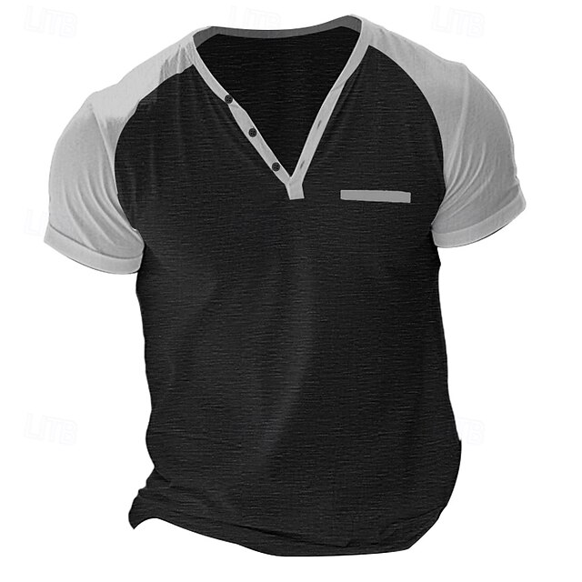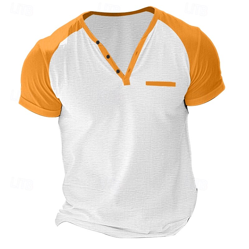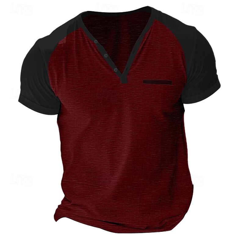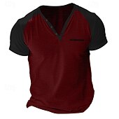 More information about Men's Tee Top Short Sleeve Short Sleeves Henley Summer Solid / Plain Color Casual Casual / Sporty Color Block Buttons Raglan Sleeves Sports & Outdoor Casual Sports Wine Yellow Light Gray Top Tee for