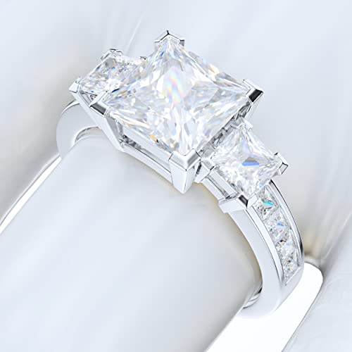 Sterling Silver 1.5ct Classic Three Stone Style All Simulated Princess Cut Diamond or Genuine Moissanite Promise Engagement Ring 6
