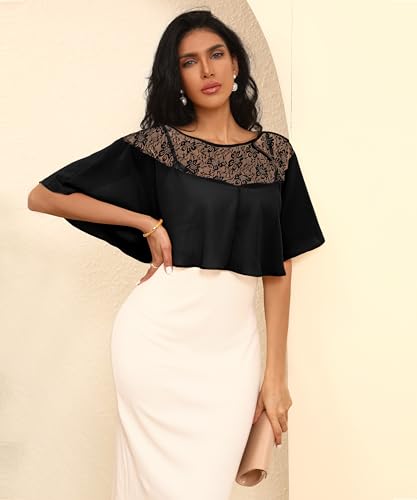 Chiffon Lace Shawl Wraps Women's Girls Cape Shrug for Evening Dress Wedding Capelet Cover Up 6