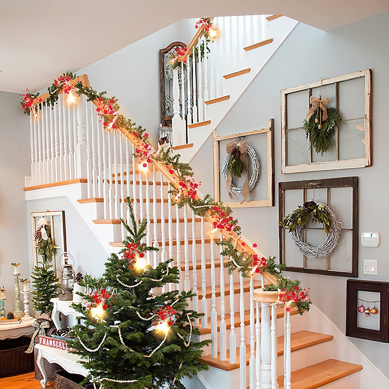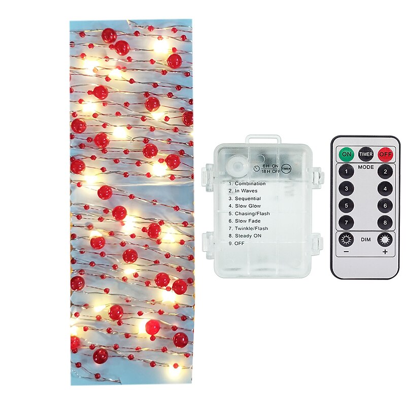 More information about Christmas Red Berry Garland Lights LED Fairy String Lights 5M-50LEDs 3M-30LEDs Christmas Decorations Remote Control Battery Powered 8 Modes Outdoor Waterproof Holiday Lights Birthday Party Decoration
