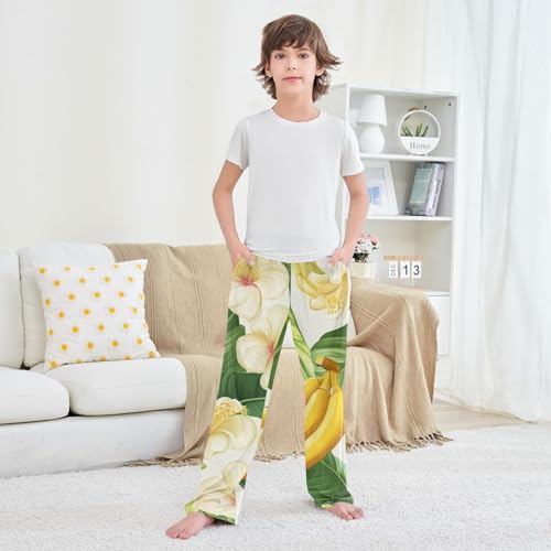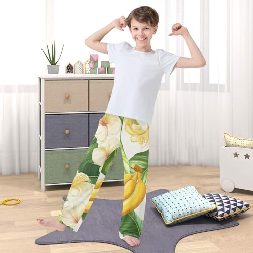ZZXXB Banana and Flowers Boys Long Pants Soft Trousers Elastic Waist Kids Lounge Bottoms with Pockets S-XL 1