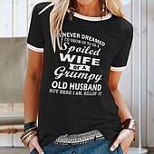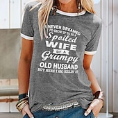 More information about Women's T Shirt Family Basic Short Sleeve Round Neck Regular Tops Casual Weekend Print Black Yellow Blue Purple Green Spring, Fall, Winter, Summer I Never Dreamed I'd Grow Up To Be Spailed Wife