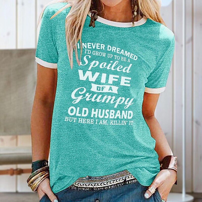 Women's T Shirt Family Basic Short Sleeve Round Neck Regular Tops Casual Weekend Print Black Yellow Blue Purple Green Spring, Fall, Winter, Summer I Never Dreamed I'd Grow Up To Be Spailed Wife 7