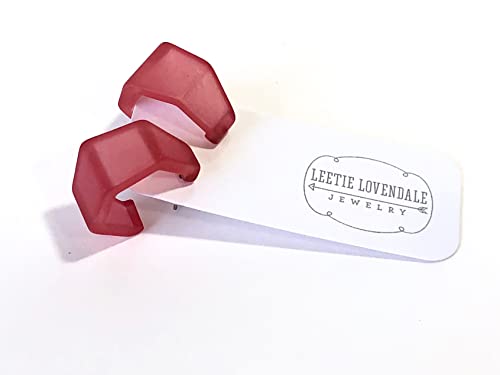 HOT ! Cranberry Frosted Hexagon Geo Hoop Earrings