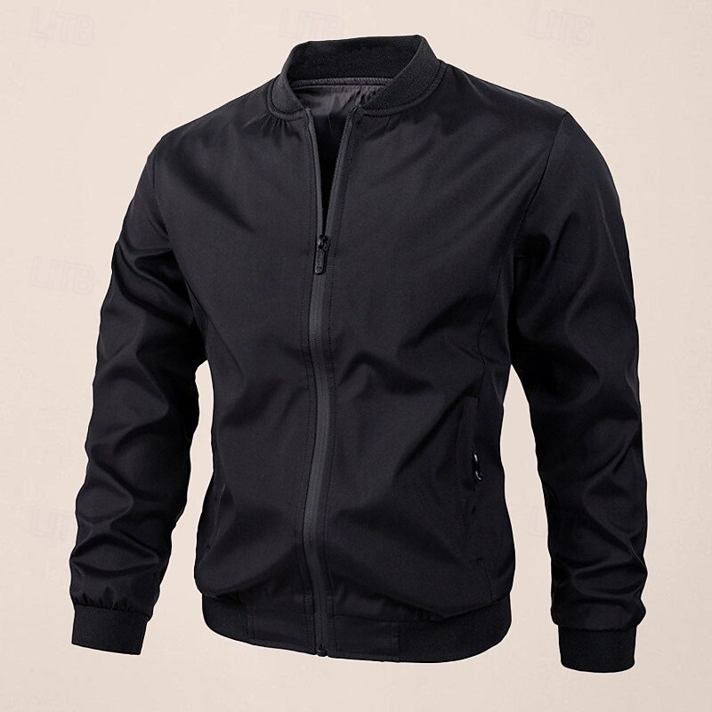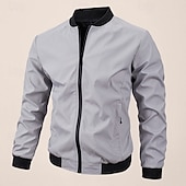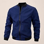More information about Men's Bomber Jacket Transition Jacket Going out Windbreaker Pocket Spring & Fall Plain Classic Stand Collar Regular Black Dark Blue Gray Jacket