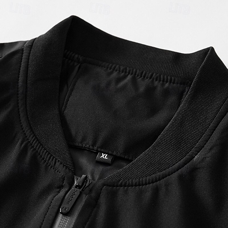 : Crafted from high-quality polyester, this men's bomber jacket is designed for both comfort and durability. The fabric is lightweight, making it perfect for transition seasons like spring and fall, while offering resistance against everyday wear.