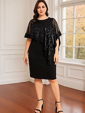 More information about Sheath / Column Mother of the Bride Dress Black Dress Plus Size Sparkle & Shine Crew Neck Knee Length Chiffon Sequined Half Sleeve with Sequin