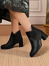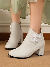 More information about Women's White Faux Leather Ankle Boots with jacquard and Block Heel – Stylish Winter Short Booties for Ladies, Ideal for Holiday Parties, Outdoor Wear & Casual Street Style