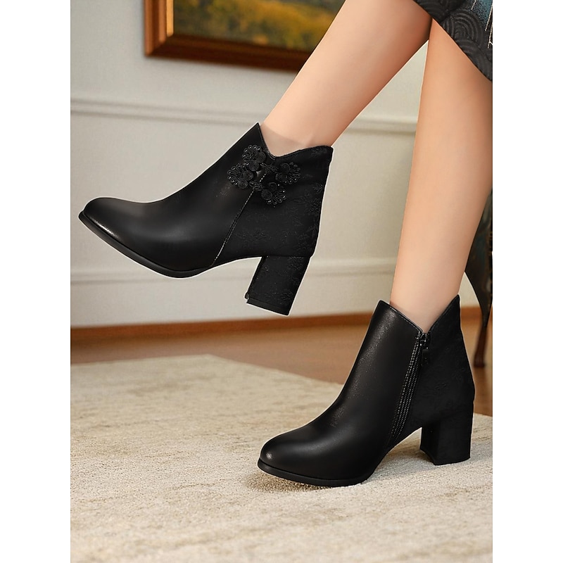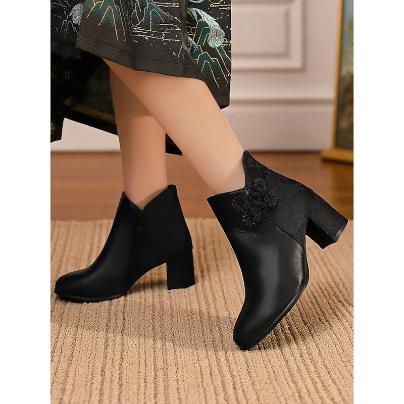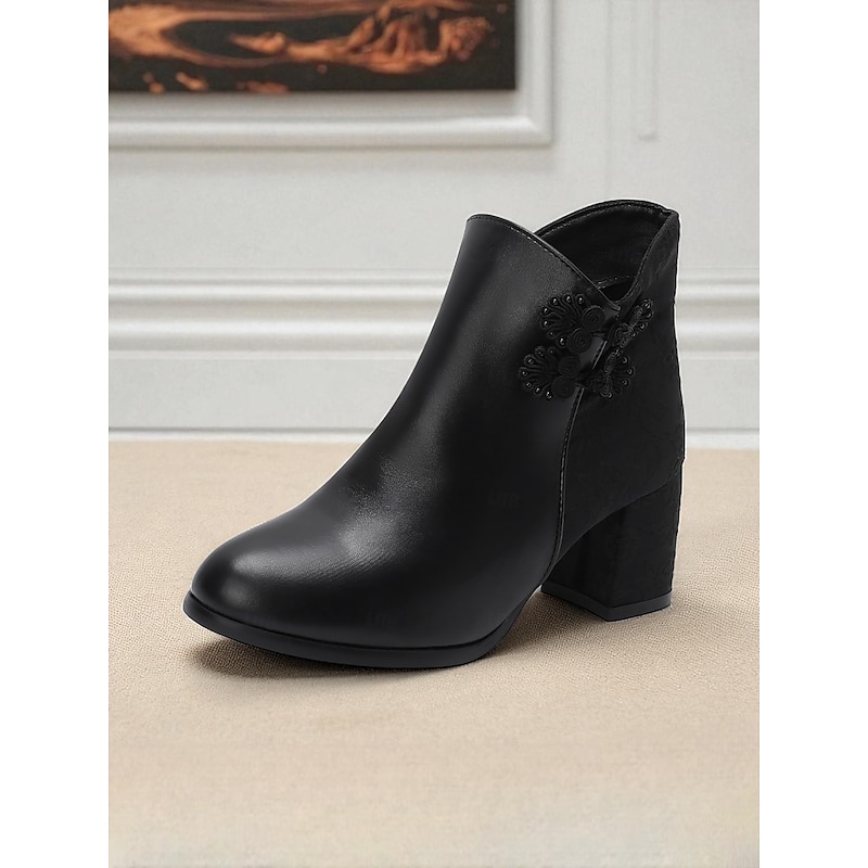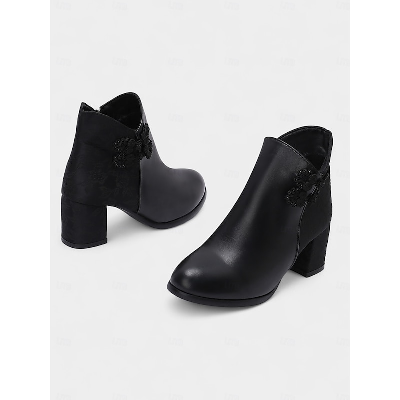 Highlights - Premium faux leather upper for a luxurious look - Soft textile lining for added comfort - Stylish chunky heel for a trendy touch - Round toe shape for a classic silhouette - Durable rubber outsole for long-lasting wear