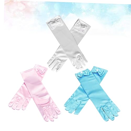 1 Set Satin Dress Up Gloves White Pink Light Blue Party Gloves for Weddings Ballet Dance Pageants and Family Photos 3