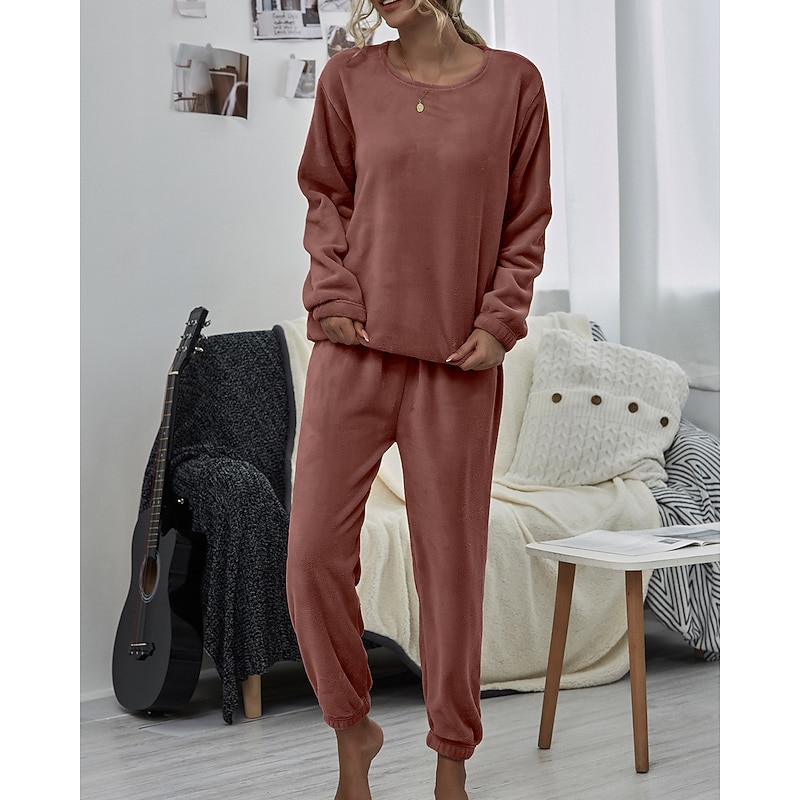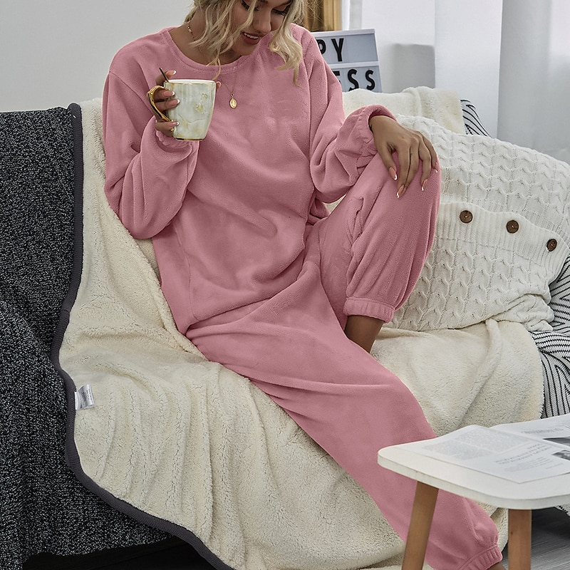 More information about Women's Pink Fleece Pajamas Nighty Pjs Sets 2 Pieces Pure Color Sport Simple Comfort Party Home Street Warm Gift Long Sleeve Hoodie Pant Elastic Waistband Winter Fall Home Outfits