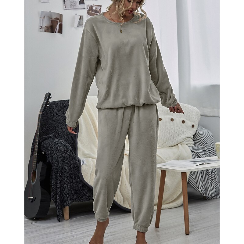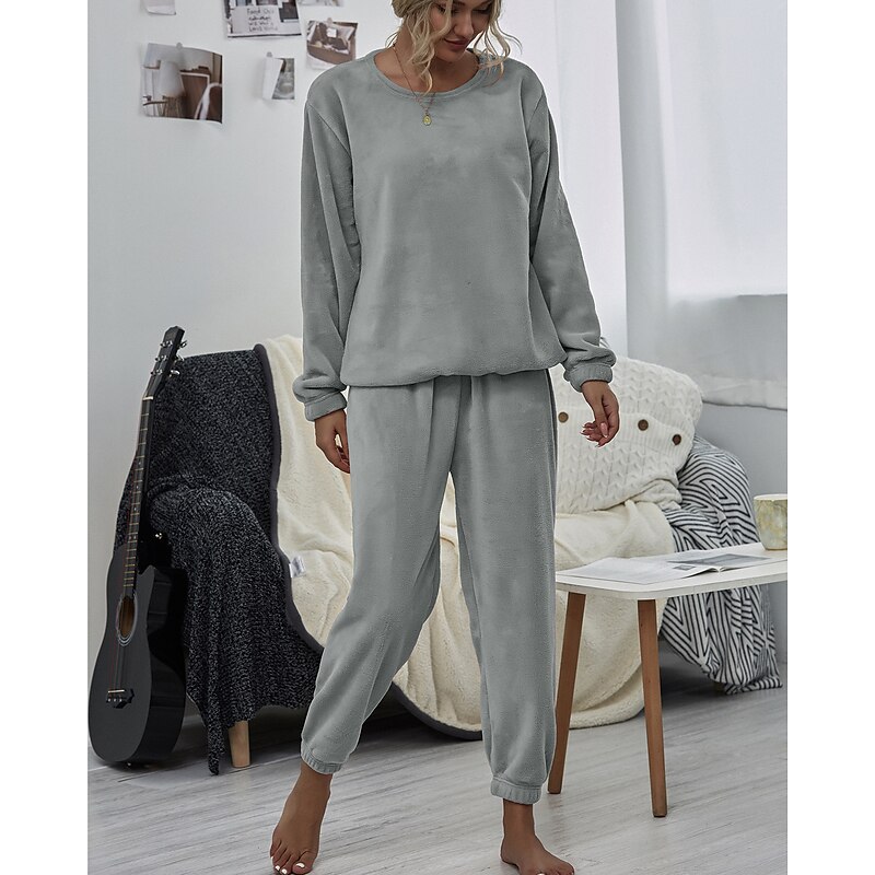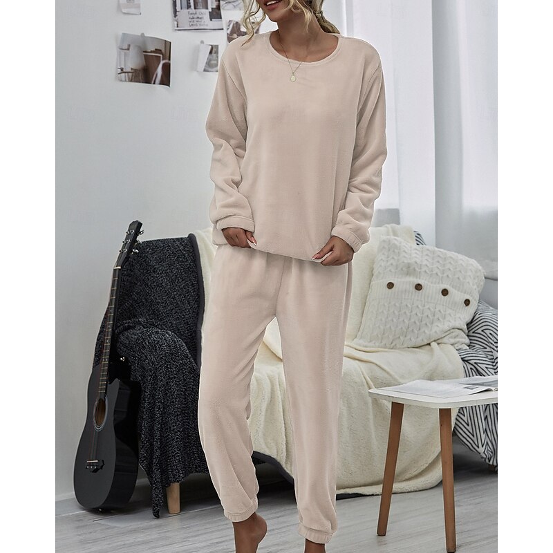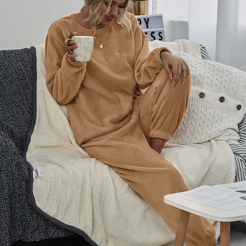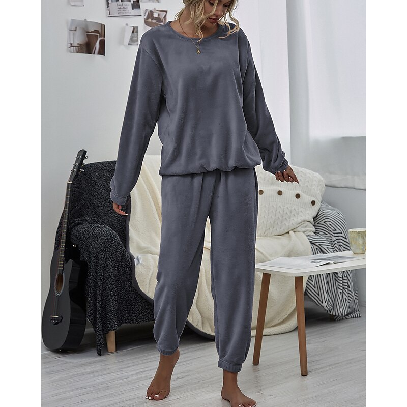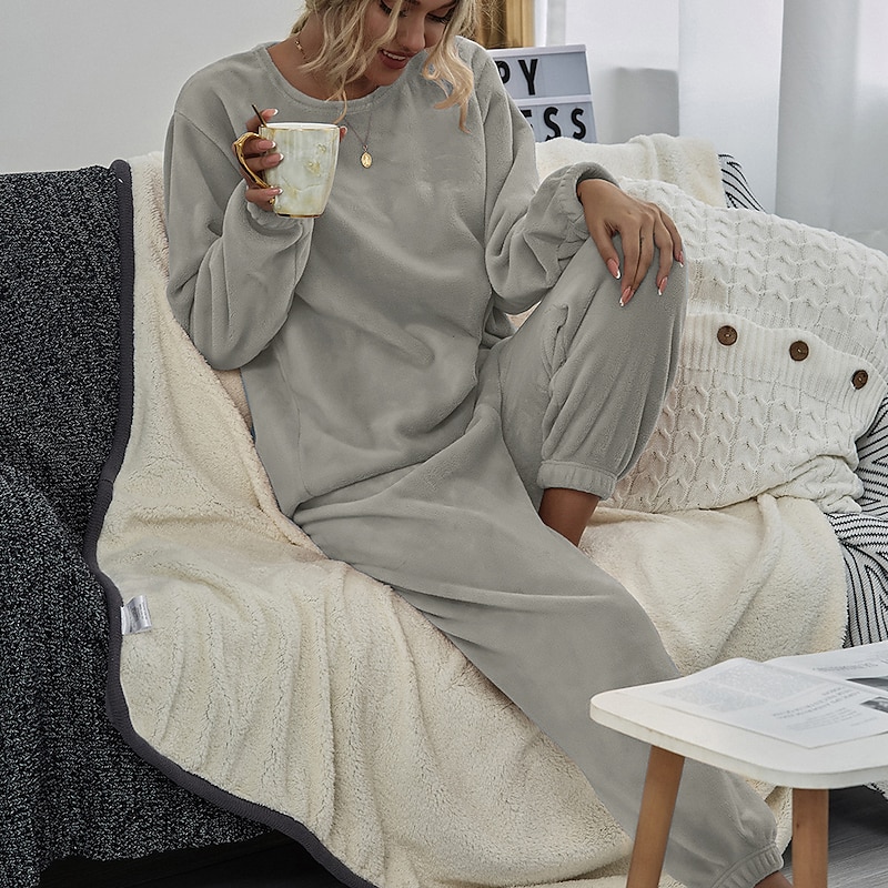 : Crafted from a luxurious blend of polyester and fleece, this women's loungewear set offers a plush, soft-to-the-touch feel. The high-quality fleece material ensures exceptional warmth and comfort, making it ideal for relaxing days at home.