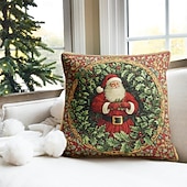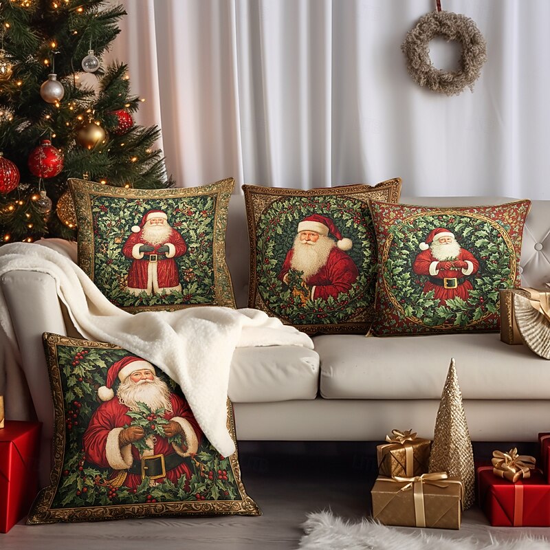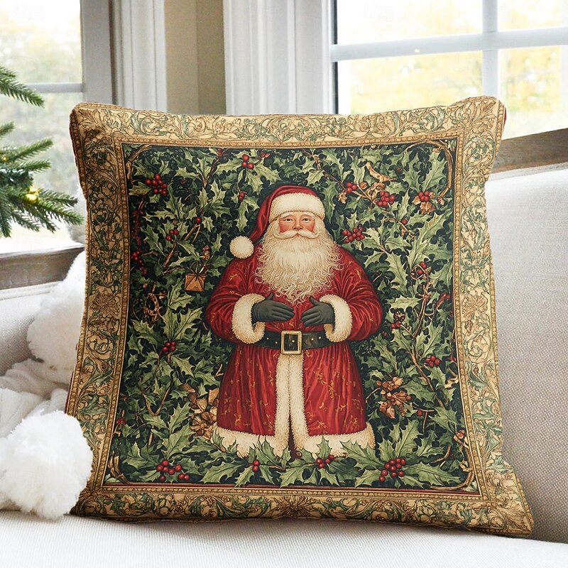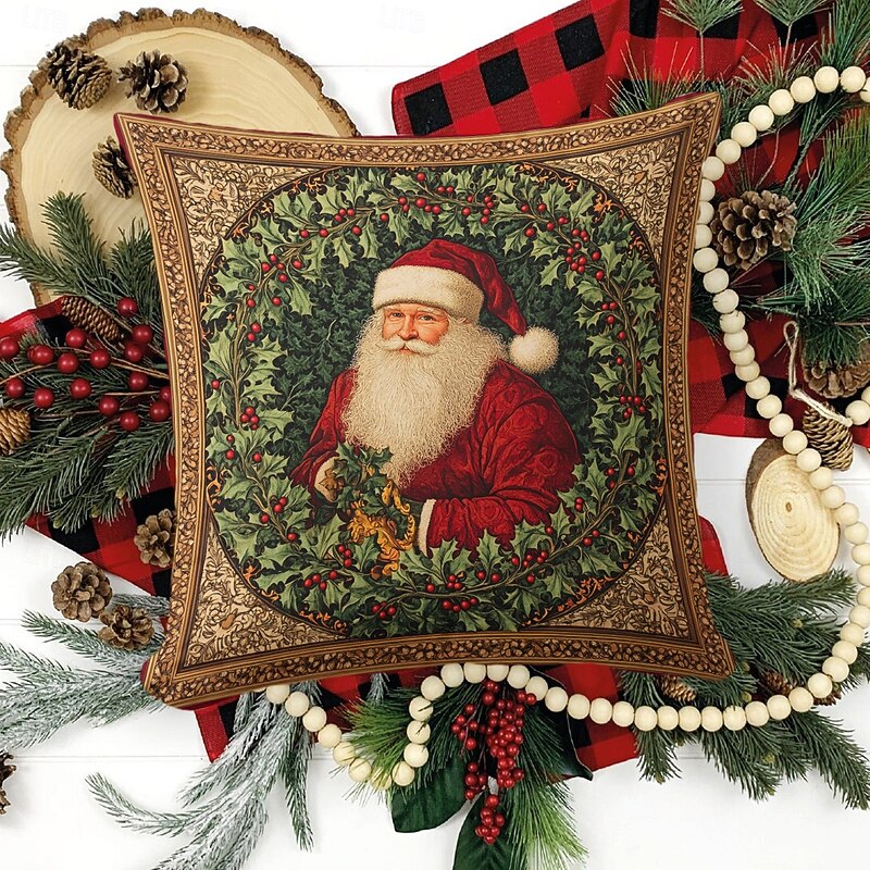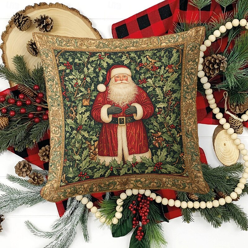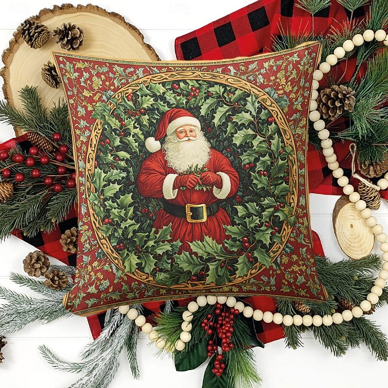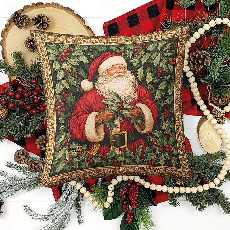 Christmas Decorations Decorative Toss Pillows Cover Holly Santa 1PC Soft Square Cushion Case Pillowcase for Bedroom Livingroom Sofa Couch Chair