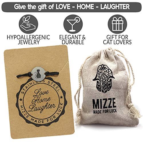 • 🐱 IDEAL CAT MOM & CAT LOVER GIFTS - Each stainless steel jewelry piece is presented with a recycled paper gift card (Love - Home - Laughter) and is packaged in a MIZZE jewelry cotton bag. The stainless cat charm bracelet is an ideal cat mom gift, cat lover gift, cat loss bracelet or pet memorial bracelet.