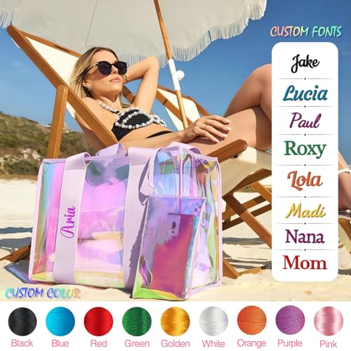 HOT ! Personalized Soap Bubble Beach Tote - Iridescent Waterproof Clear Tote Bag with Phone Pouch for Women, Tip-Proof Travel Essentials for Pool, Cruise, Bachelorette & Personalized Gifts