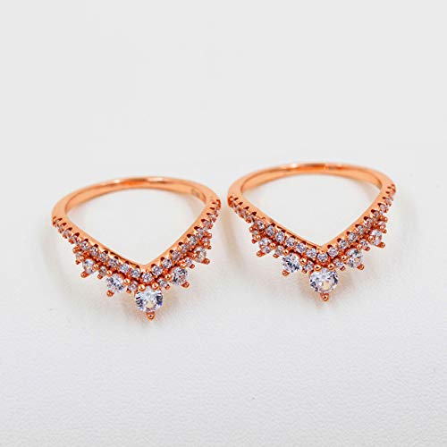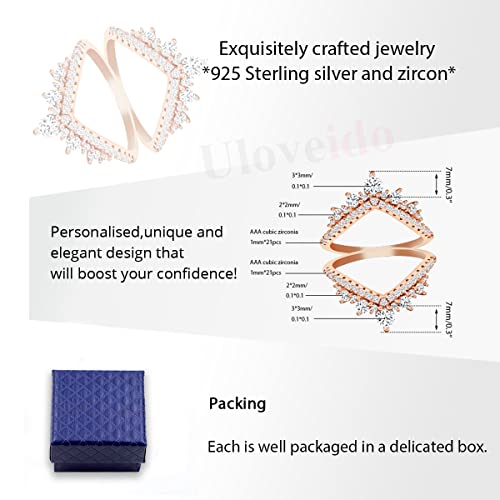 Uloveido 925 Sterling Silver Round CZ Crown Wedding Engagement Ring Guard Enhancer 2pcs V-shape Stack Rings Set Y1027 7