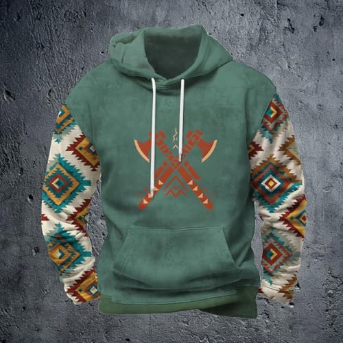 HOT ! Mens Aztec Hoodie Western Tribal Print Sweatshirt Fall Fashion Long Sleeve Country Pullover Cowboy Graphic Clothing