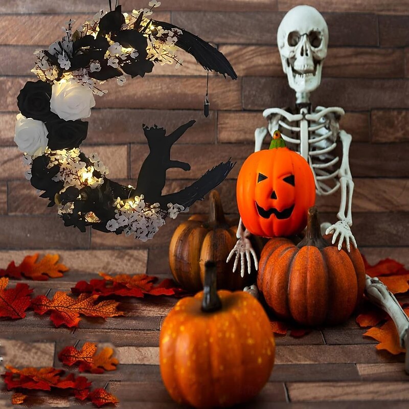 $20.99 - Creative Cat Wreath LED Night Light - Halloween Moon Cat Hanging Decor for Home and Window Display, Perfect Gift for Cat Lovers 2025. Shop for cheap Halloween Indoor online? Buy at lightinthebox.com on sale today!