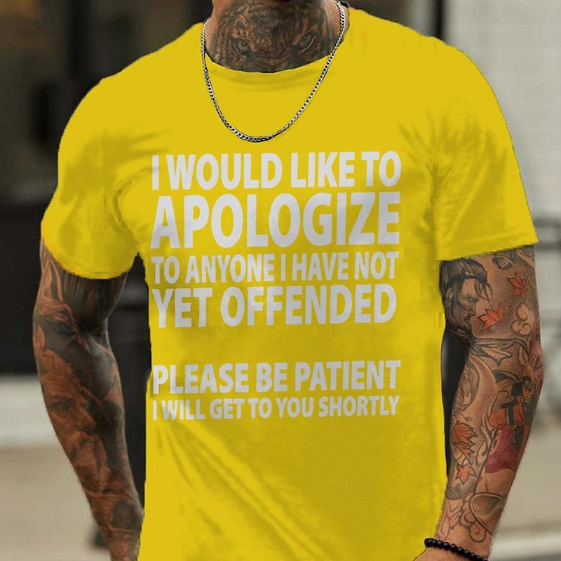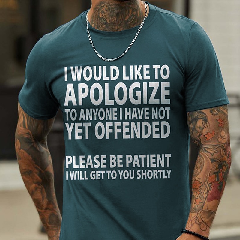 HOT ! Men's Graphic T-Shirt - Sarcastic Humor 'Haven't Offended You Yet' Short Sleeve Lifestyle Tee