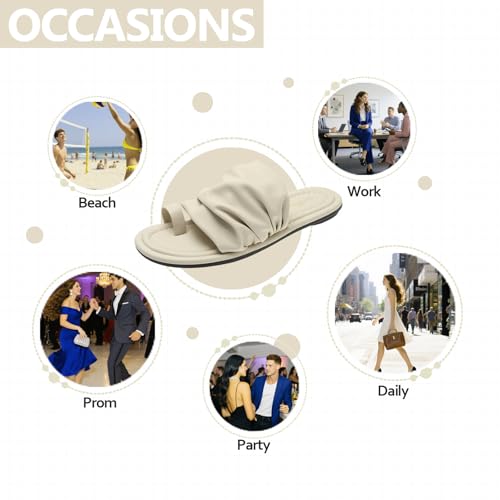 More information about Womens Round Open Toe Flat Ring Sandals Pleated Wide Band Foam Comfy Slip On Soft Sole Cute Dressy Slides For Summer Beach Daily Casual Walking Slippers