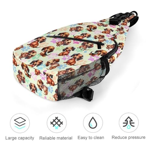 • Size: This print sling bag is 13.3 x 3.5 x 7.5 in. External large pocket, side mesh pockets and inner pockets in the main bag allow you to neatly classify and store mobile phones, keys, water cups and other items outdoors, making it practical to take without confusion