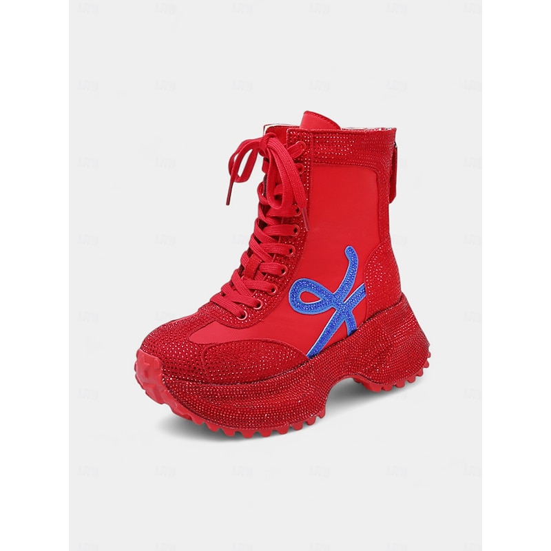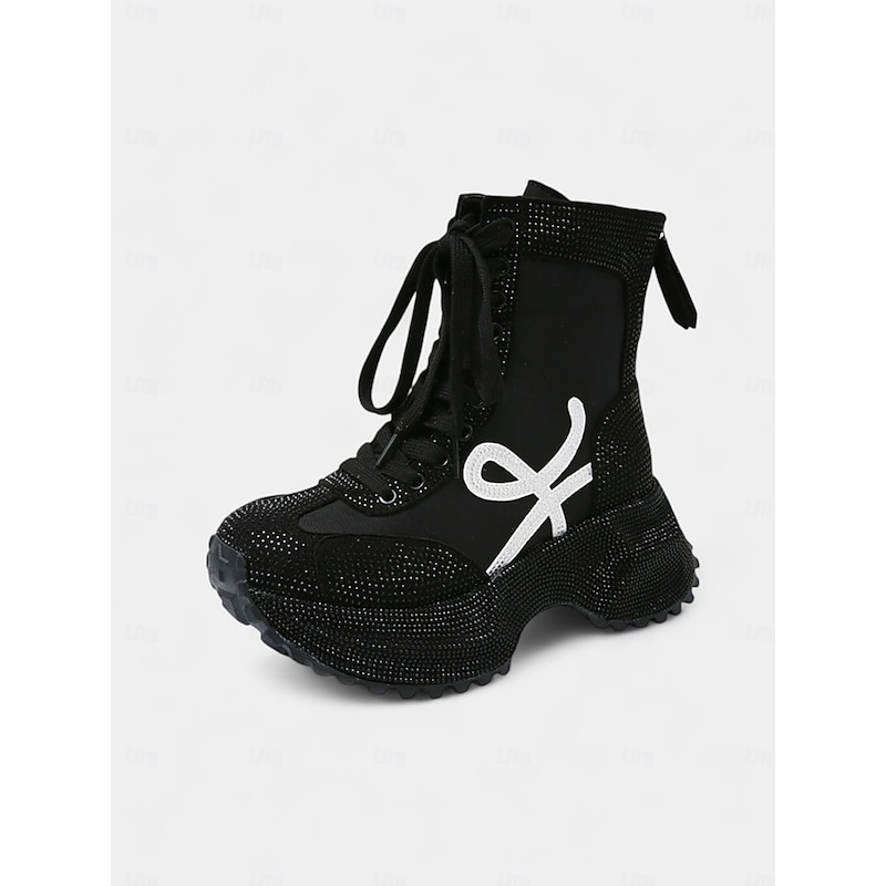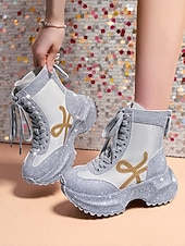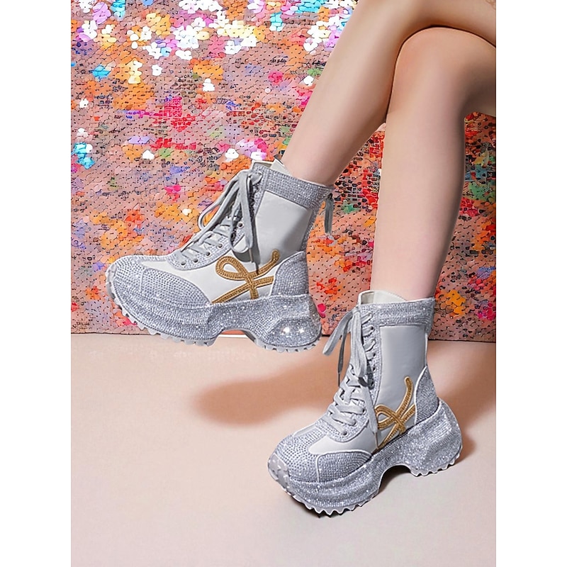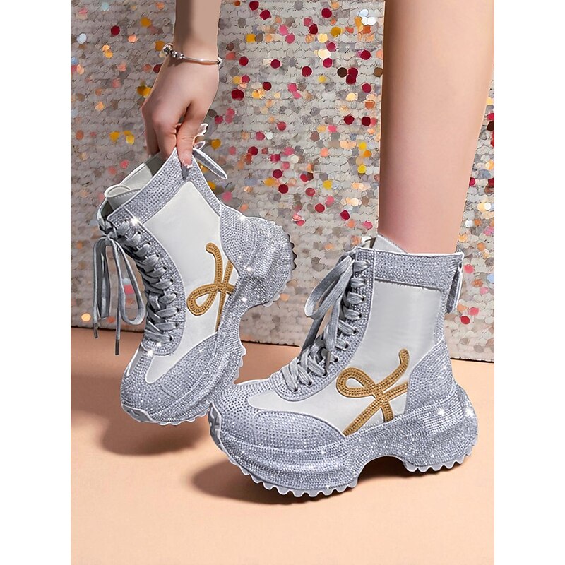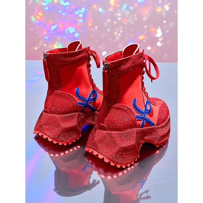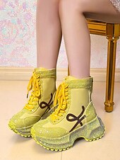 More information about Women's Yellow Rhinestone Platform Boots - Lace-Up Glitter Chunky Heel Ankle Boots for Nightlife Party & Clubwear