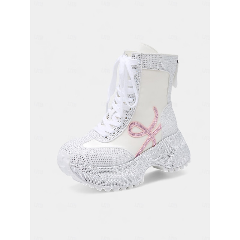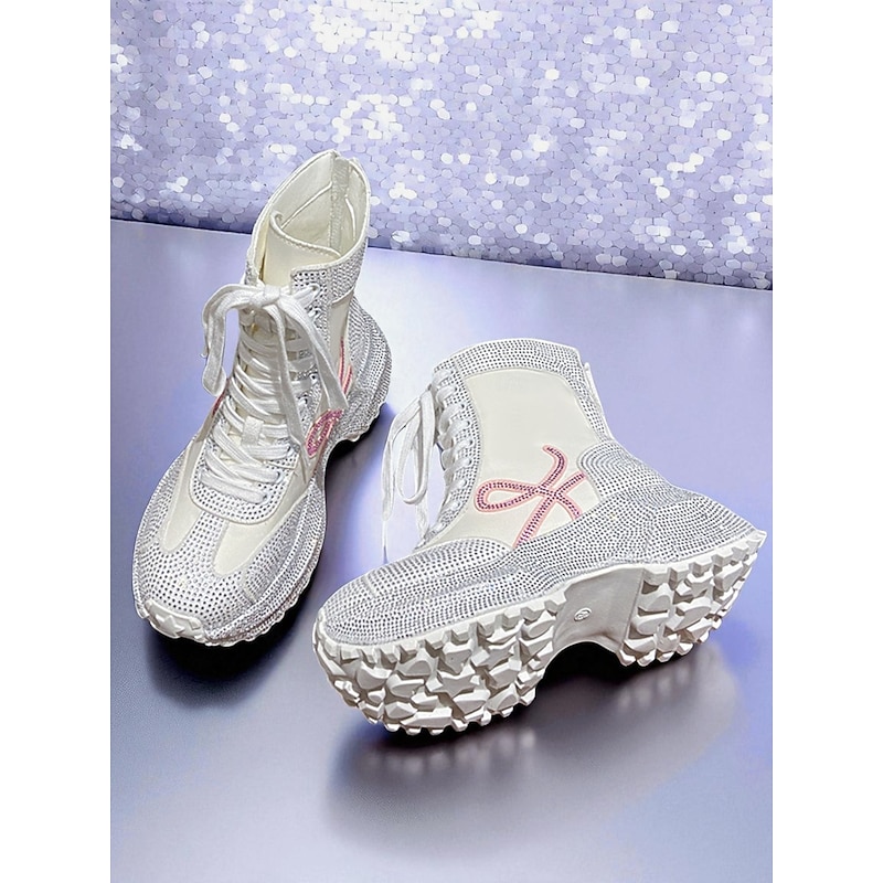 Women's Yellow Rhinestone Platform Boots - Lace-Up Glitter Chunky Heel Ankle Boots for Nightlife Party & Clubwear 20