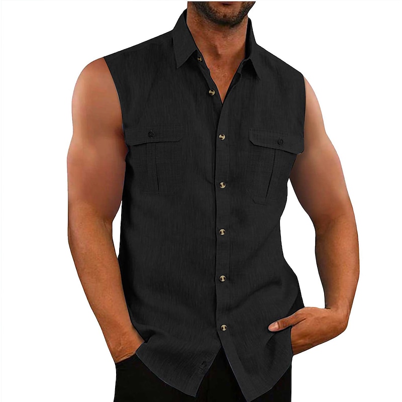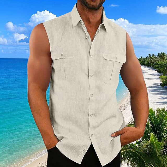 More information about Men's Cotton Linen Shirt Summer Shirt Casual Shirt Beach Shirt Solid / Plain Color Hawaiian Black Blue Purple Green Sleeveless Shirt Collar Summer Clothing Apparel
