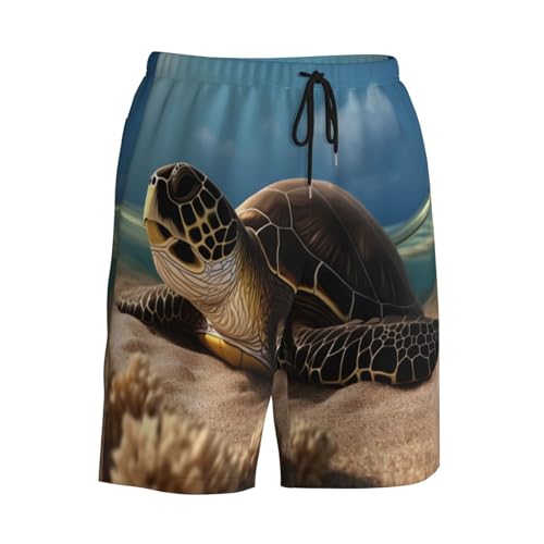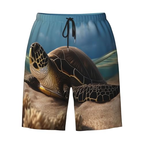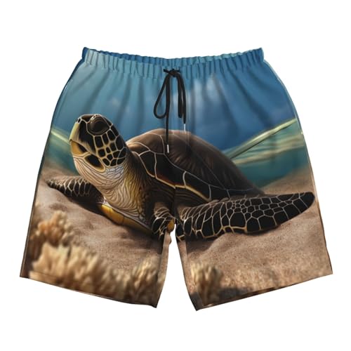 Turtle on The Beach Men Beach Pants – Swim Trunks for Men,Quick-Dry and pleasant, Suitable for Beach, Surf, and Everyday Wear