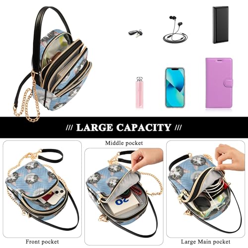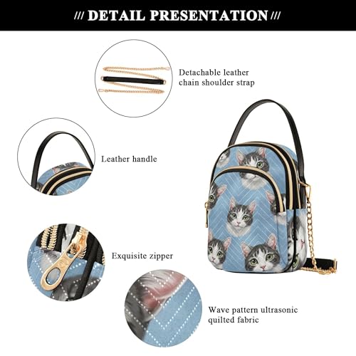 Cute Kitty White Grey Cats Shoulder Handbag Women Quilted Chain Strap Phone Wallet Handbag Cute Ladies Crossbody Satchel Bag 4