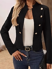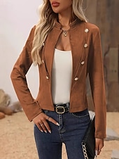 More information about Women's Faux Leather Jacket Warm Comfortable Patchwork Buttons Vintage Casual Plain Vacation Street Casual Daily Wear Short Stand Collar Regular Fit Long Sleeve Outerwear Black Brown Khaki Fall Winter