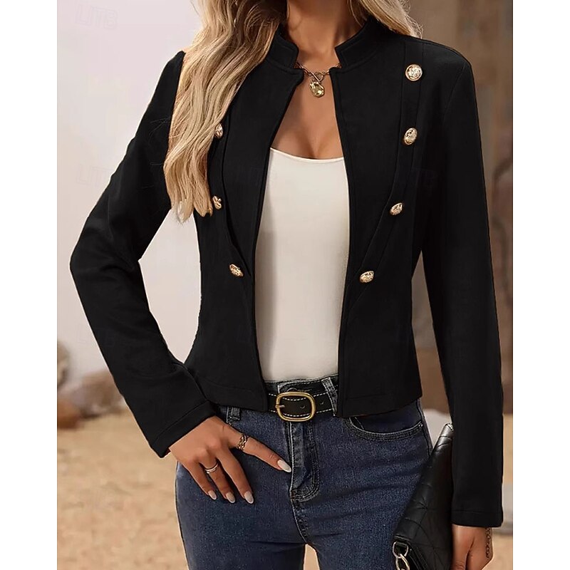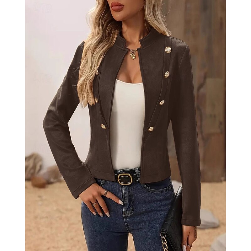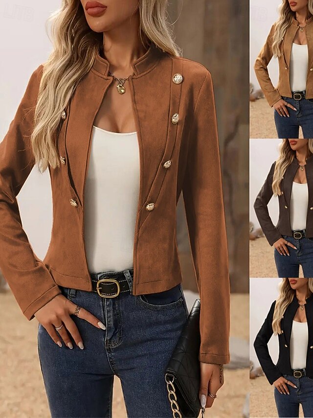 Women's Faux Leather Jacket Warm Comfortable Patchwork Buttons Vintage Casual Plain Vacation Street Casual Daily Wear Short Stand Collar Regular Fit Long Sleeve Outerwear Black Brown Khaki Fall Winter 6