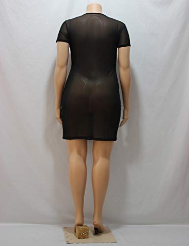 KELOVEPAN Plus Size Womens Sheer Mesh Swimsuit Cover Ups Dress Short Sleeve See Through Dresses for Women Sexy Club 5