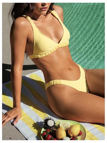 SHENHE Women's String Bikini Set High Cut Elastic Strap Triangle Bikini Cheeky Butter Swimsuit 6